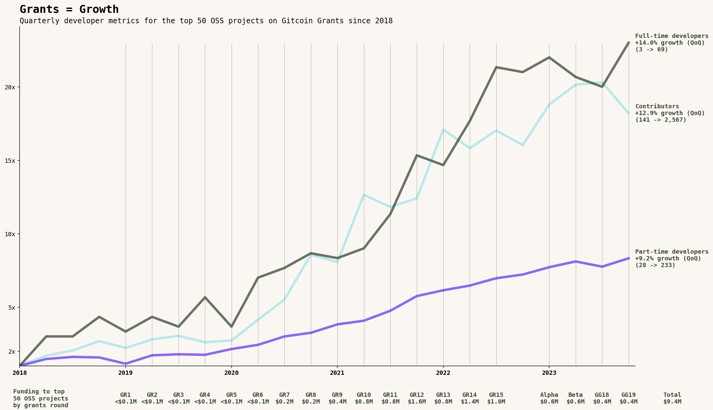 In this piece, we identify a group of 50 open source software projects that have received significant funding across multiple Gitcoin Grants rounds and then we examine the relationship between grants and growth.
