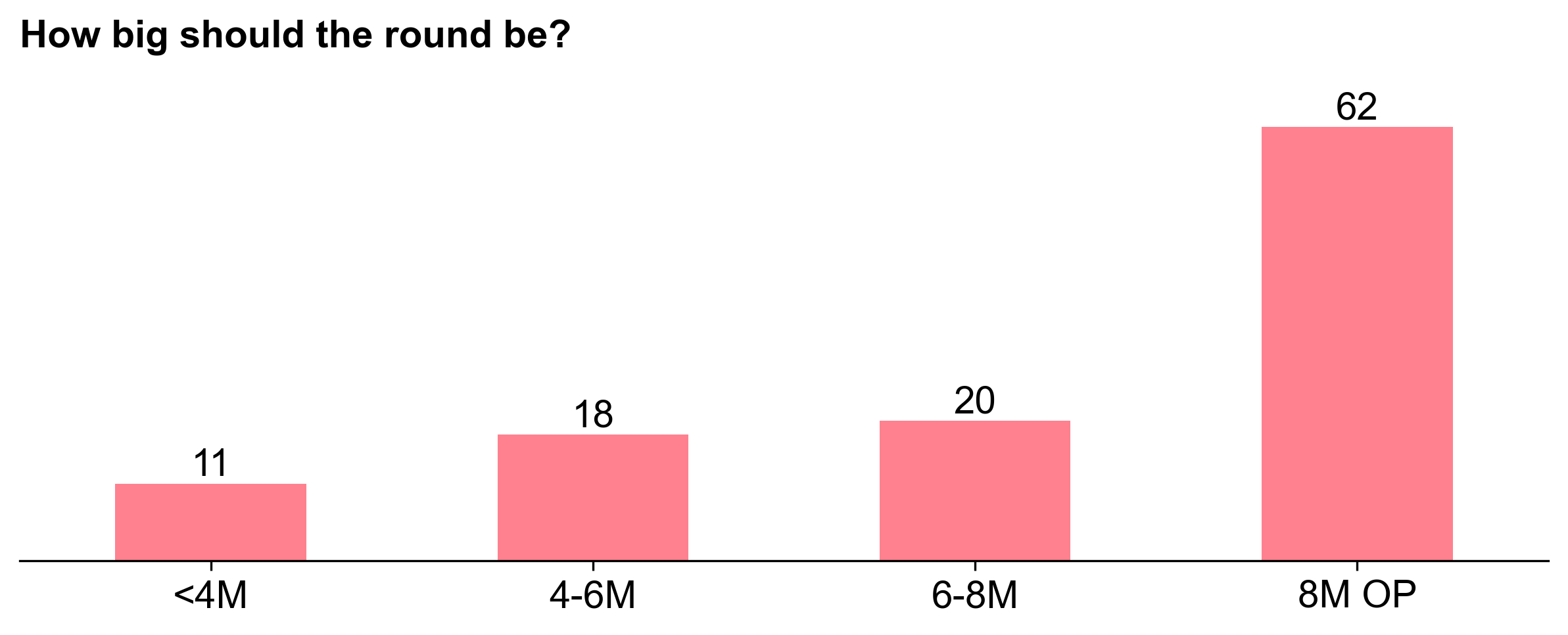 62 out of 111 voters opted for the max allocation of 8M OP, so this ended up being the round size. There was more divergence in the allocation per category, which we’ll come back to.