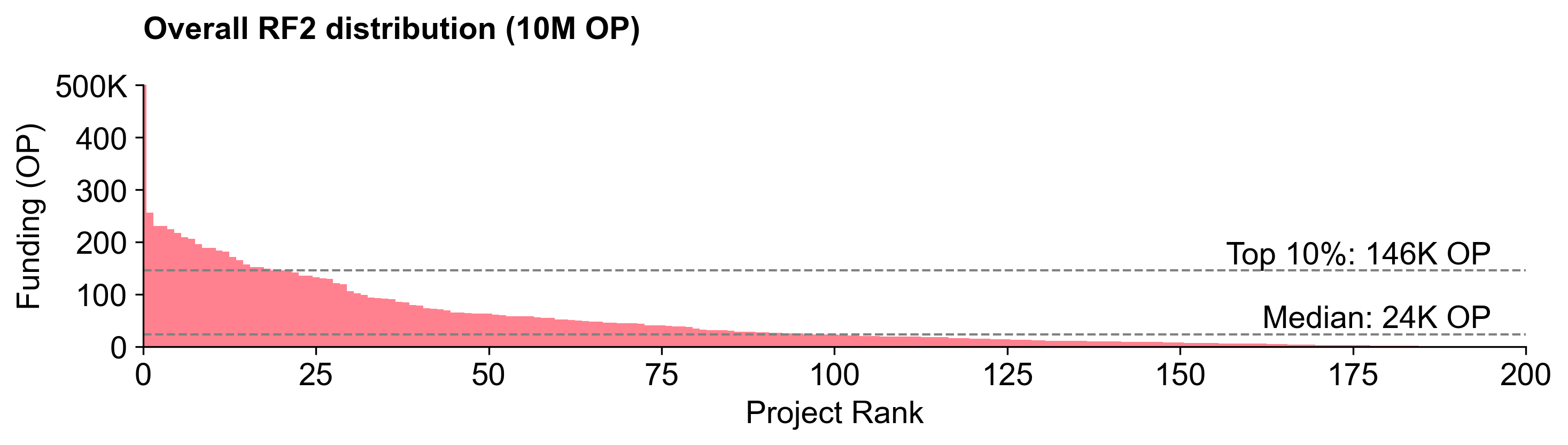Despite this, Ethereum Core Contributions still received the largest share of the budget: 3.1M OP (~39%). It also exhibited the steepest distribution curve.