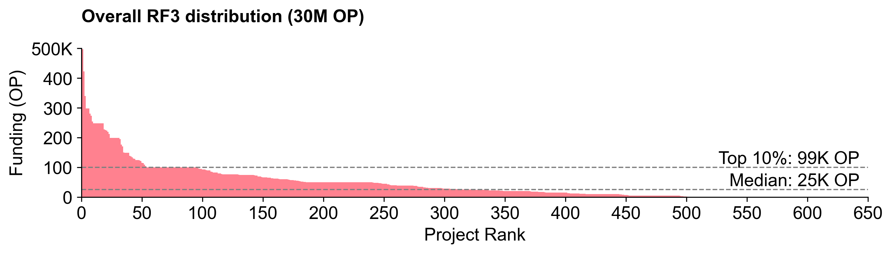 Despite this, Governance Infrastructure & Tooling received the largest share of the budget: 1.005M OP (~41.9%). It also exhibited the steepest distribution curve.