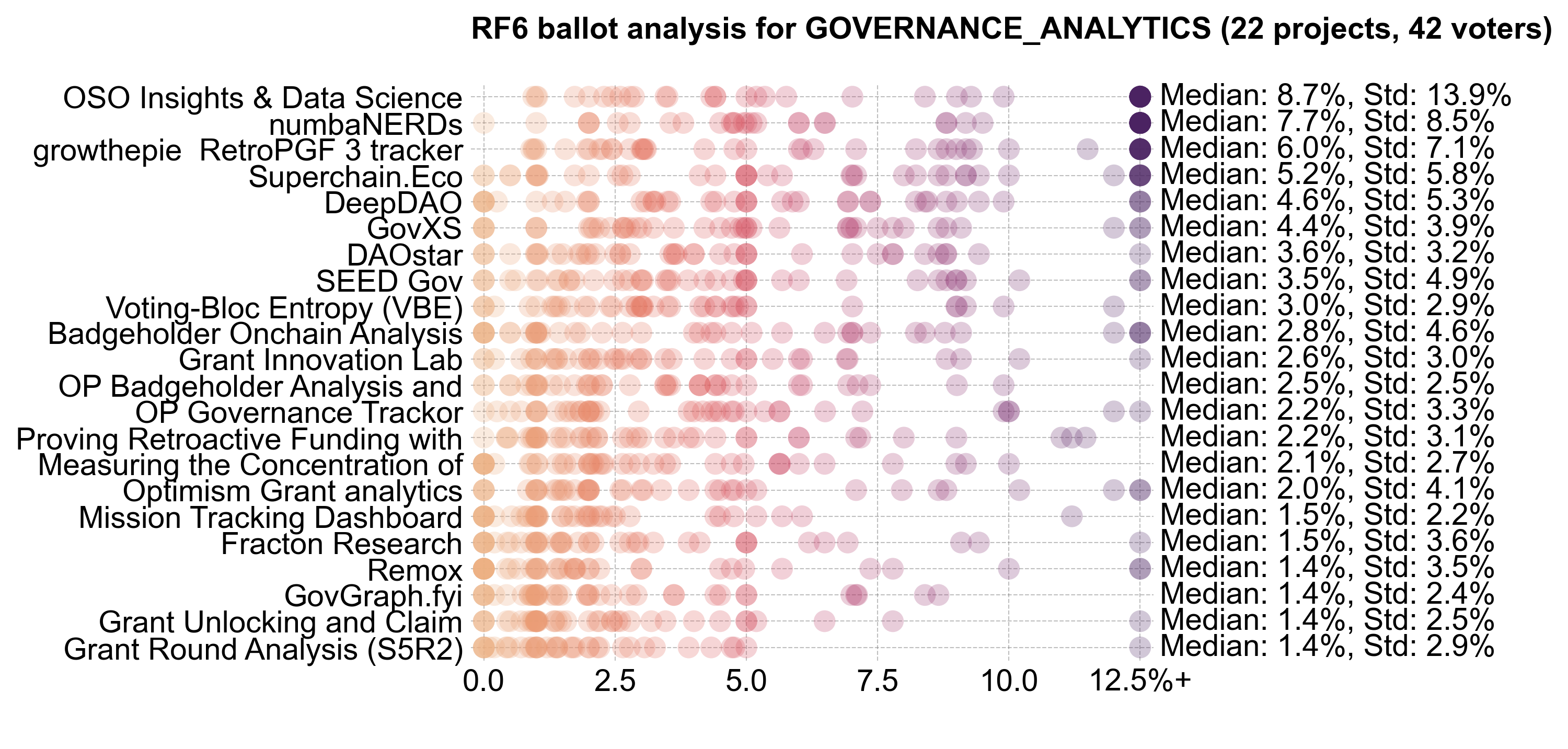 Voters assigned to Governance Analytics had a narrow range of opinions about how much budget to allocate to this category. It received the second largest share of the budget: 724K OP (~30.1%).